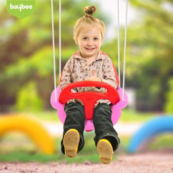 Baybee Baby Swing Chair for Kids, Adjustable Pink Baby Swing Toy with Backrest & Rope | Baby Hanging Jhula Swing Chair for Kids Indoor Outdoor 1 to 3 Years Boy Girl, Plastic, 25D x 25W x 8H Cm