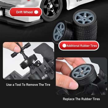 VNJ RC Drift 2.4GHz 1:24 Scale 4WD Car |15KM/H High Speed Model Vehicle LED Lights Drifting Tire Racing Sport Toy Car for Kids