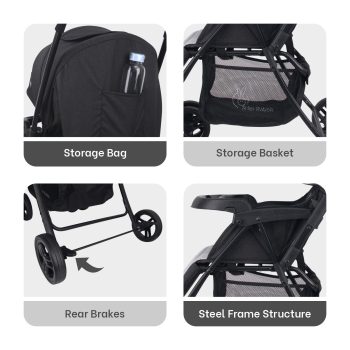 R for Rabbit Pocket Stroller Lite Baby Stroller, Portable Travel Friendly Pre Installed Baby Trolley Stroller & Pram for Newborn Babies of Age 0 to 3 Years | (Black Multi)