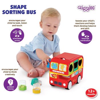 Giggles Funskool, Shape Sorting Bus, Educational Push Along Toy with Blocks, Features Shapes, Free Wheeling, Colours, 6 Months & Above, Infant and…