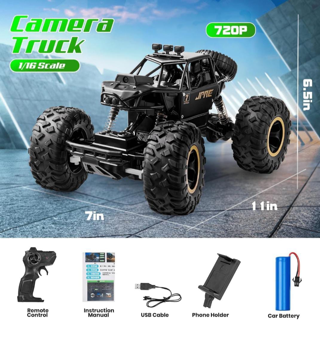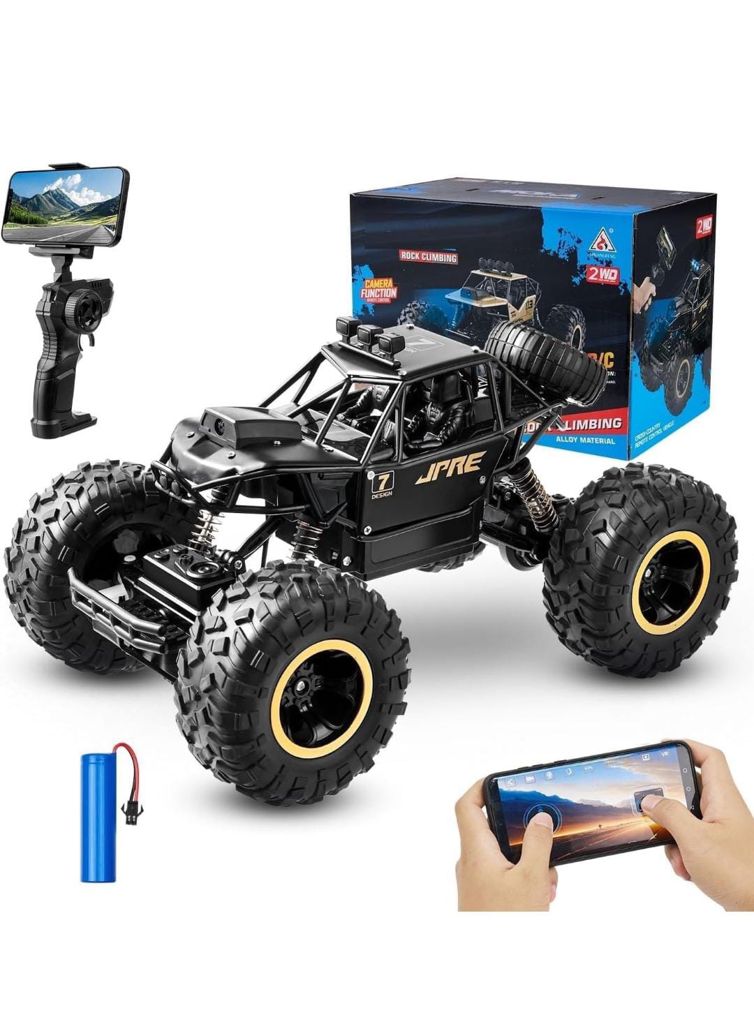 1:16 Scale Remote Control Monster Car with 720p Camera, 2WD All Terrain RC Rock Crawler Car for Kids Boys Alloy Body Stunt Truck, Rechargeable High-Speed Off-Road Vehicle