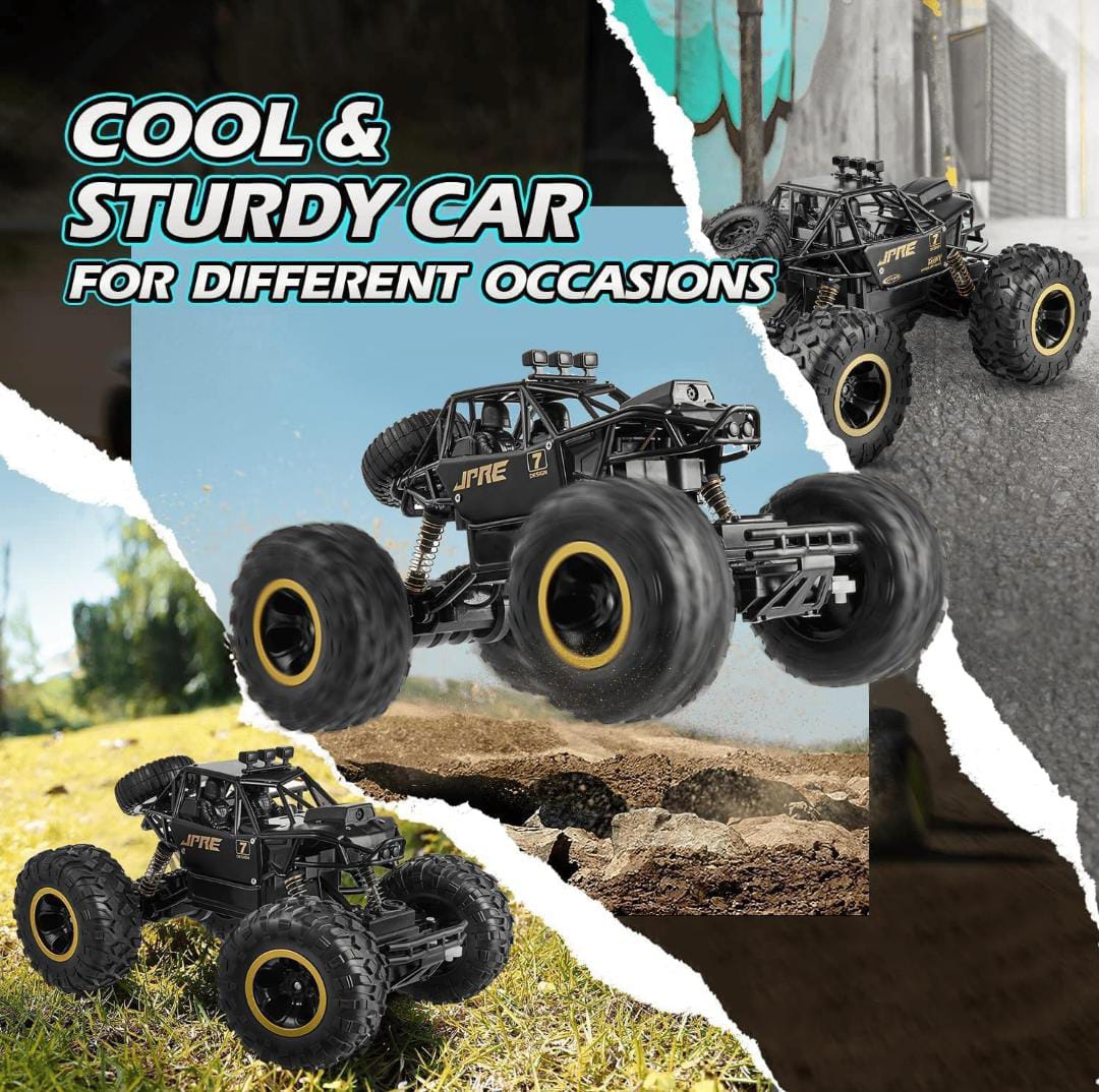 STURDY ALLOY BODY FOR TOUGH ADVENTURES – Built with a durable metal alloy frame, this remote control car is designed to withstand rough use, rocky trails, and high-speed collisions, making it ideal for adventurous kids. This Off-Road remote control truck design with high tenacity PVC shell, strong power motor, advanced off-road anti-slip tires, anti-collision beam, sensitive steering, and shock absorber, so it’s easy to confront unexpected dropping or unstable surface ground (suitable all terrain: road, highway, shallow sand, mud, grass)