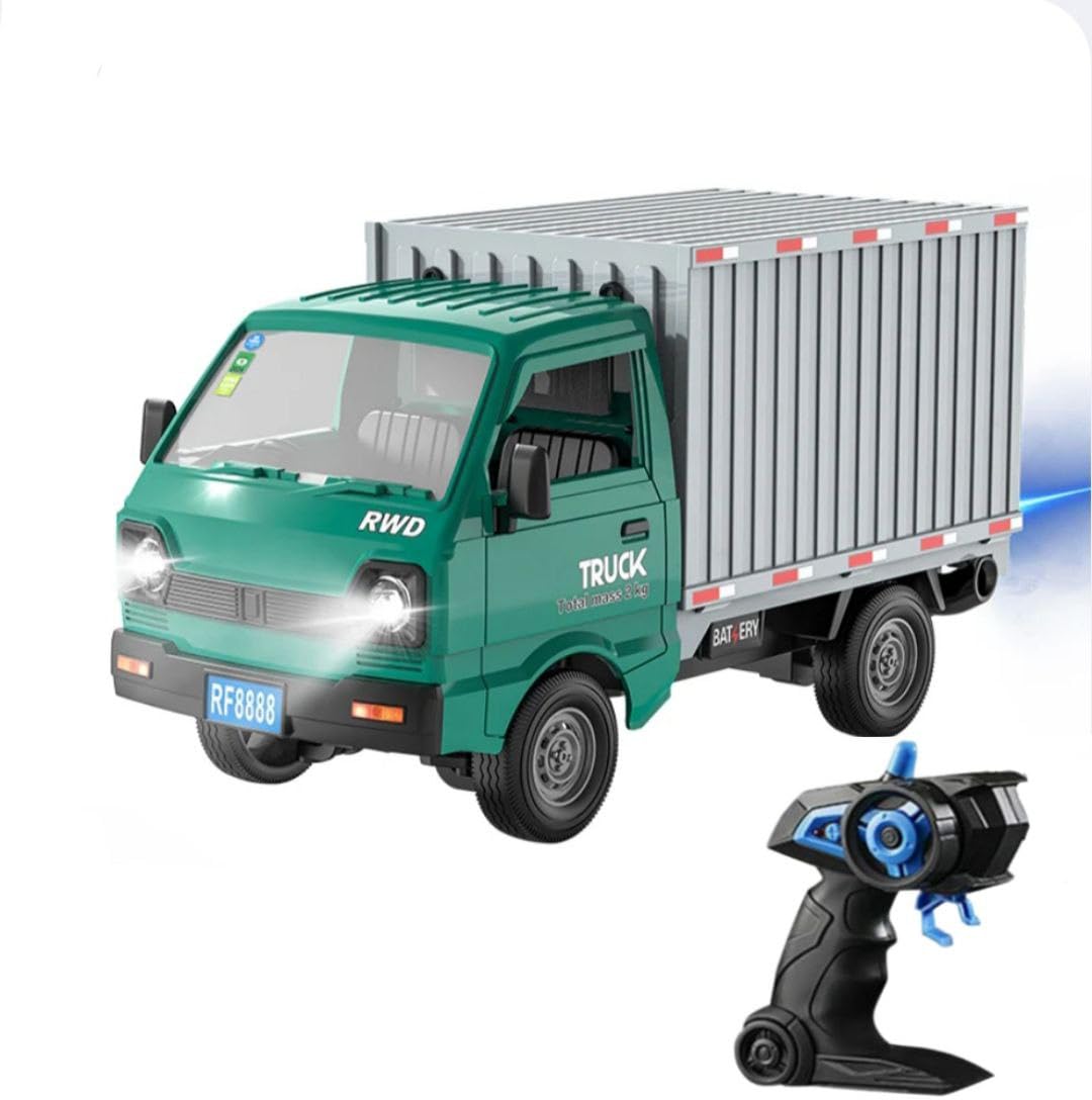 Advisian store Remote Control Car RC Kei Truck,1:16 Scale Transporter Pickup, 2.4GHz All Terrain RC Transport Cars with Spray & Light Toy Best Gifts for Kids (RC Transporter Truck – Green)