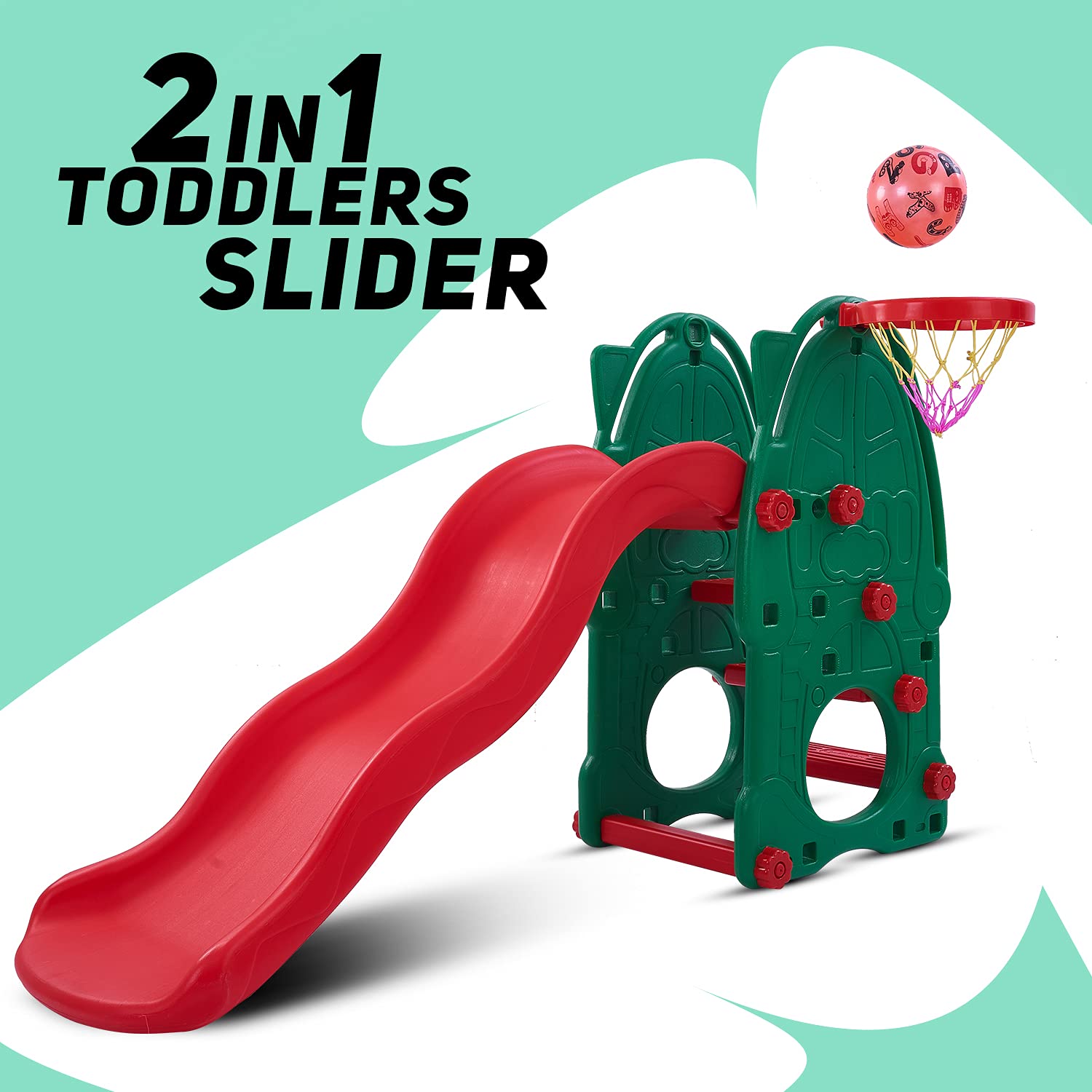 Baybee 2 in 1 Baby Slide for Kids | Perfect Baby Sliding for Kids with Basket Ball Hoop | Garden Baby Play Area Indoor Setup | Freestanding Outdoor Jumbo Slider for Kids 2 to 5 Years Boys Girls