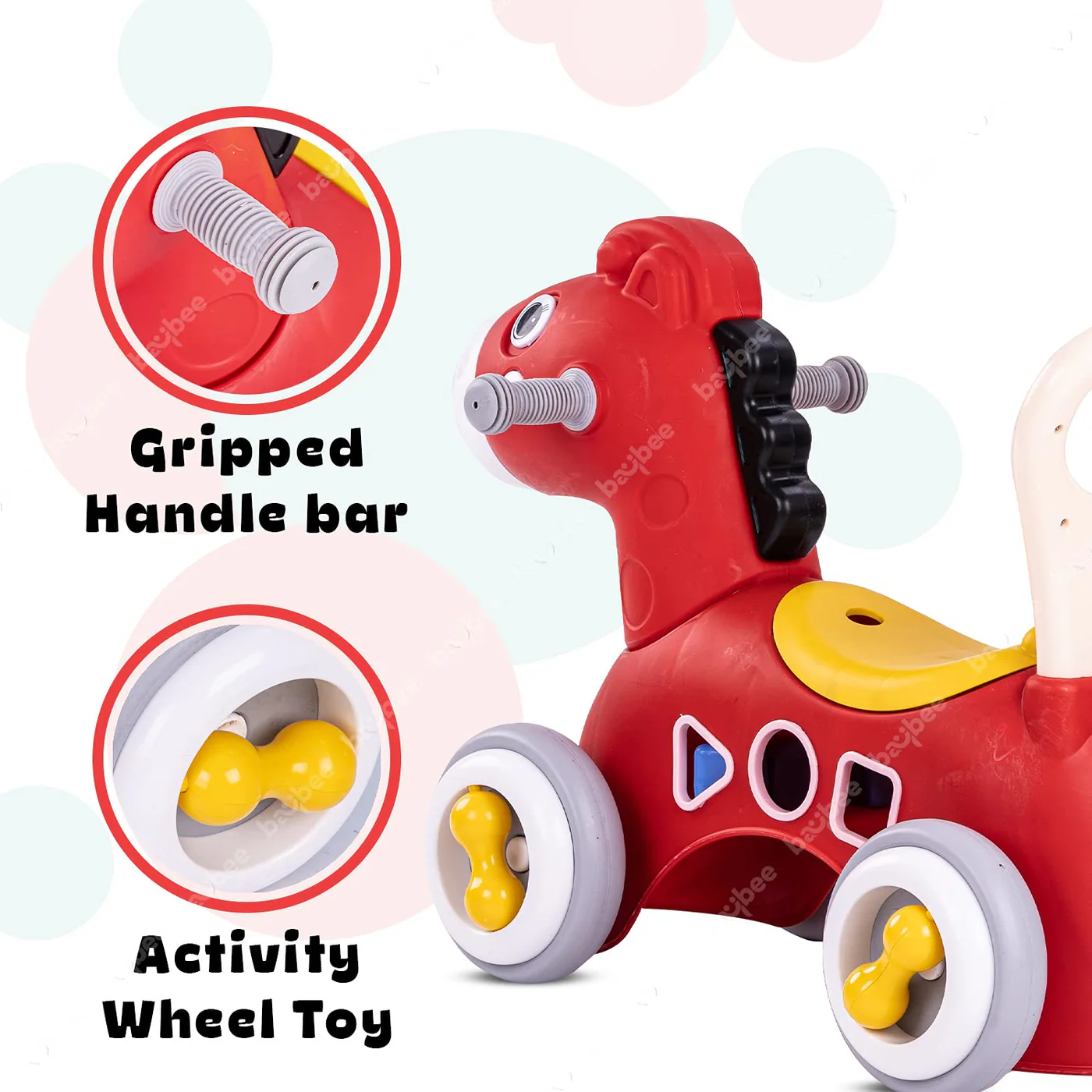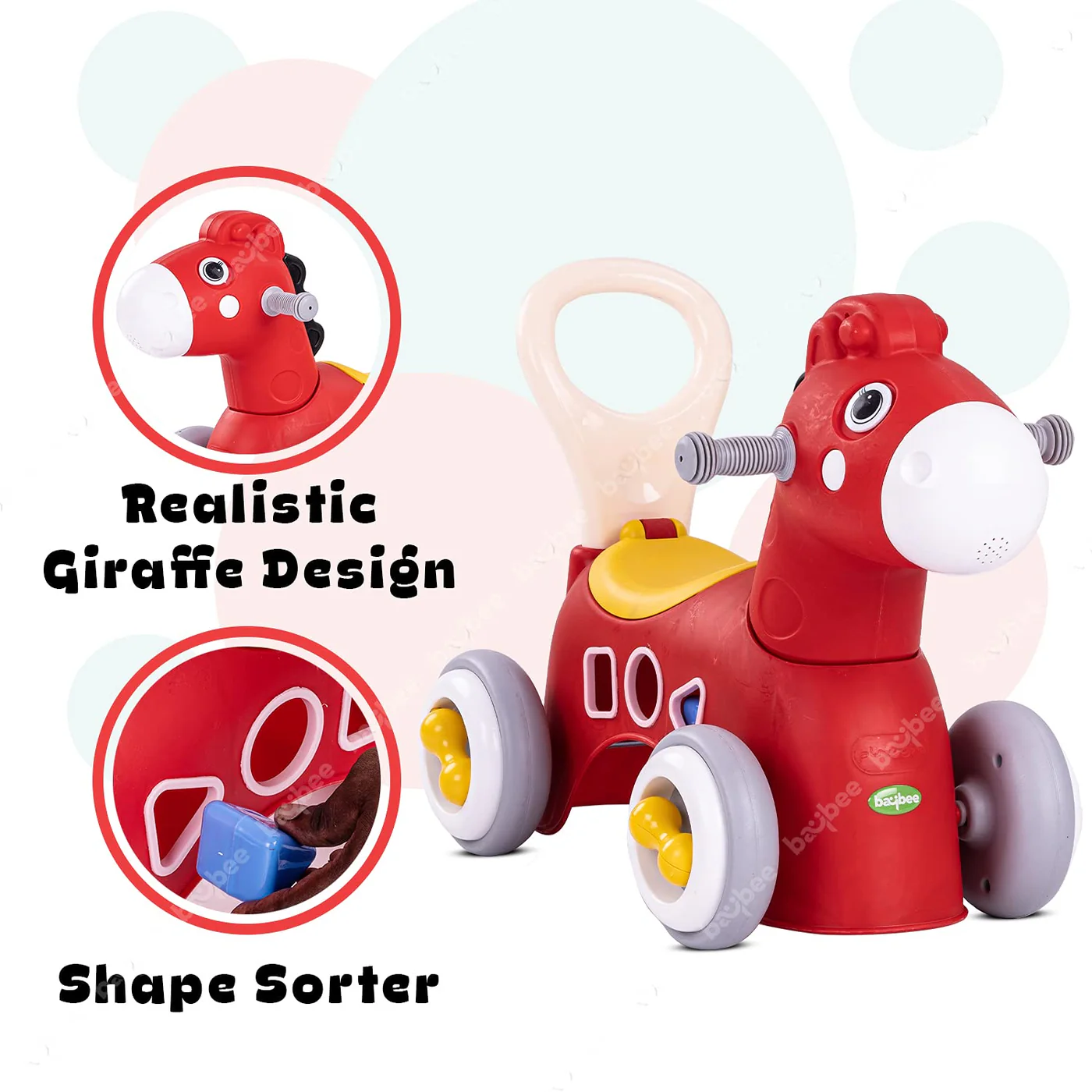 BAYBEE Giraffe Horse Rider for Kids, Ride-On Kids Car with Shape Sorting Activity Kids Toys & Storage