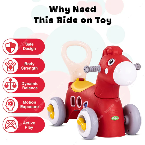 - Baybee Pinto horse rider is made of a virgin plastic material that is non-toxic and odorless and also comes with a backrest for safety.
