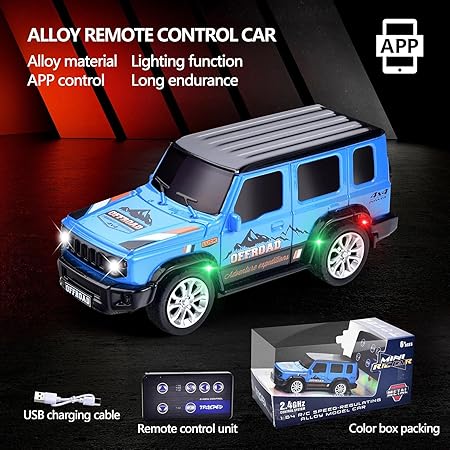 - The small remote control car is made of alloy and ABS plastic. The alloy shell is not easy to deform or damage even if it collides.This will allow your child to enjoy the joy of the remote control car for a long time