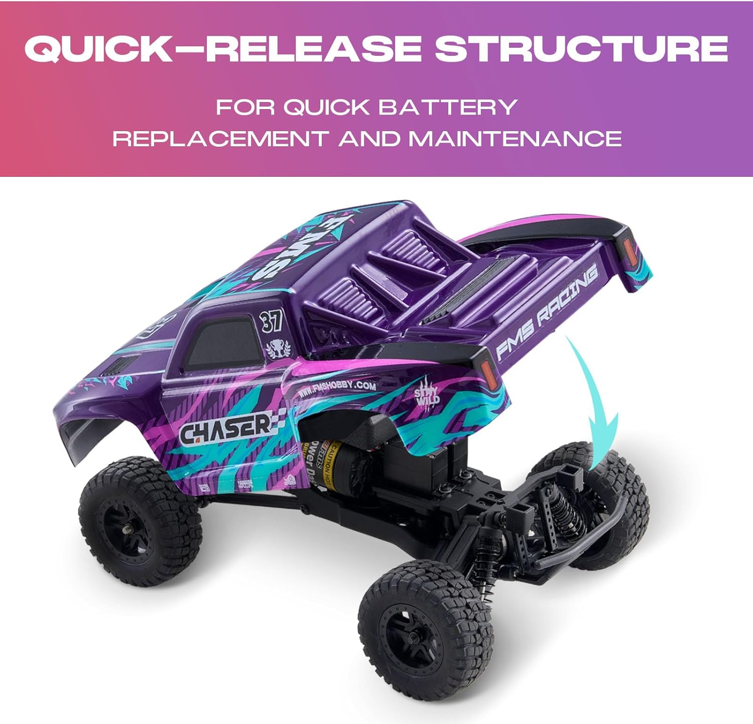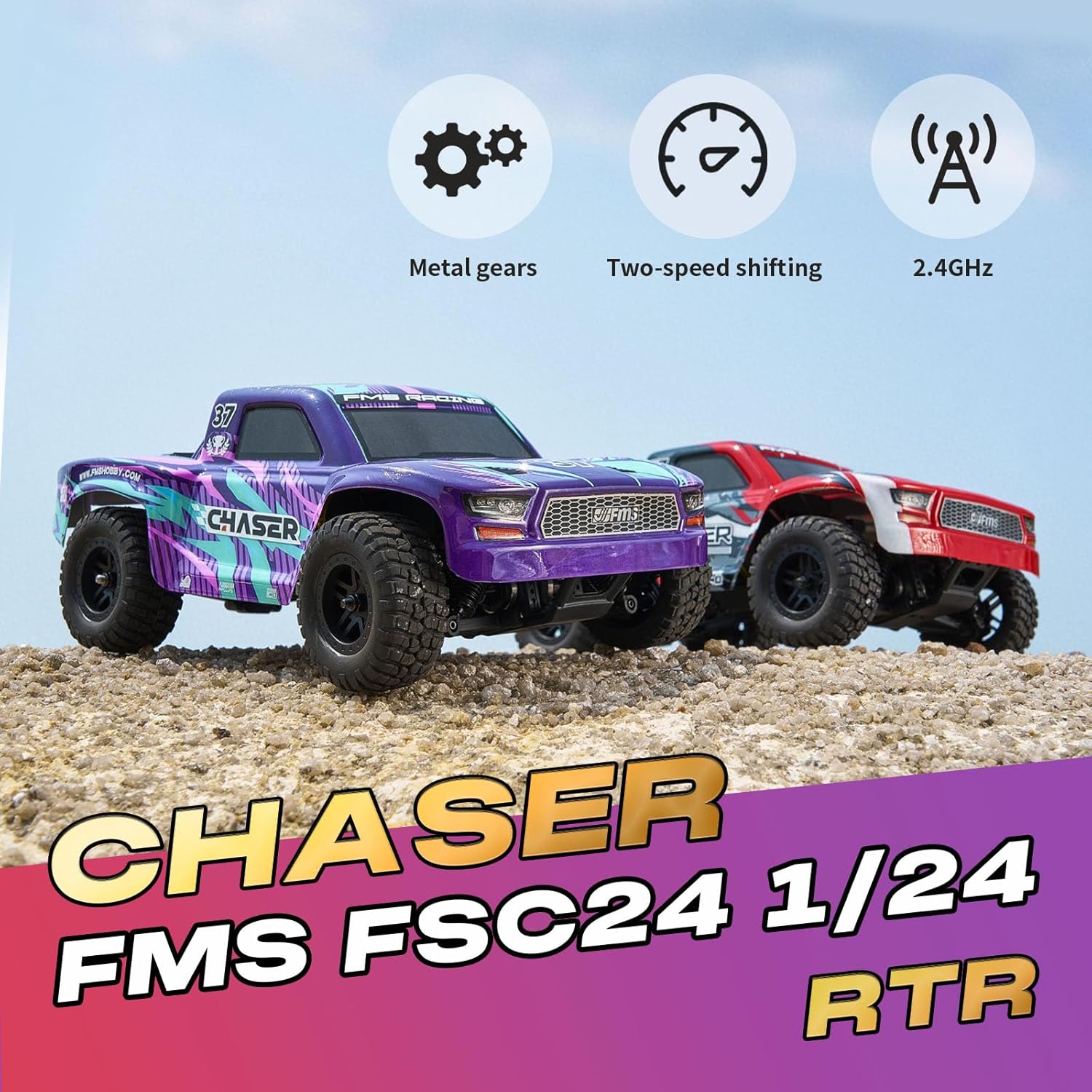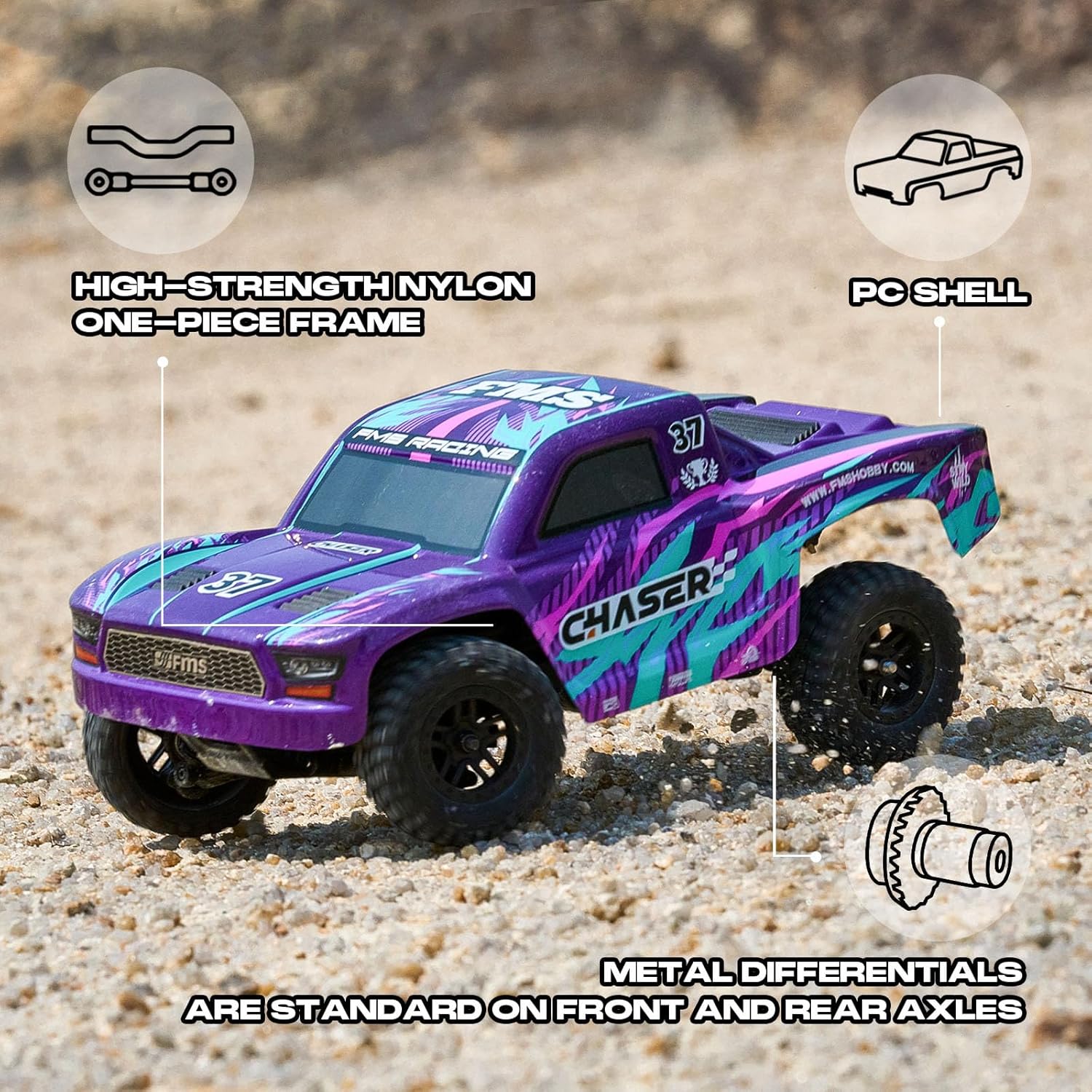 EAZYRC FMS FSC24 Chaser 1/24 RC Car 4X4 Off-Road High-Speed Short-Course Truck, 2 Speed Transmission, Brushless-Ready and 30-Minute Runtime,2.4GHz Electric Vehicle Toys Gifts for Adults (Purple)
