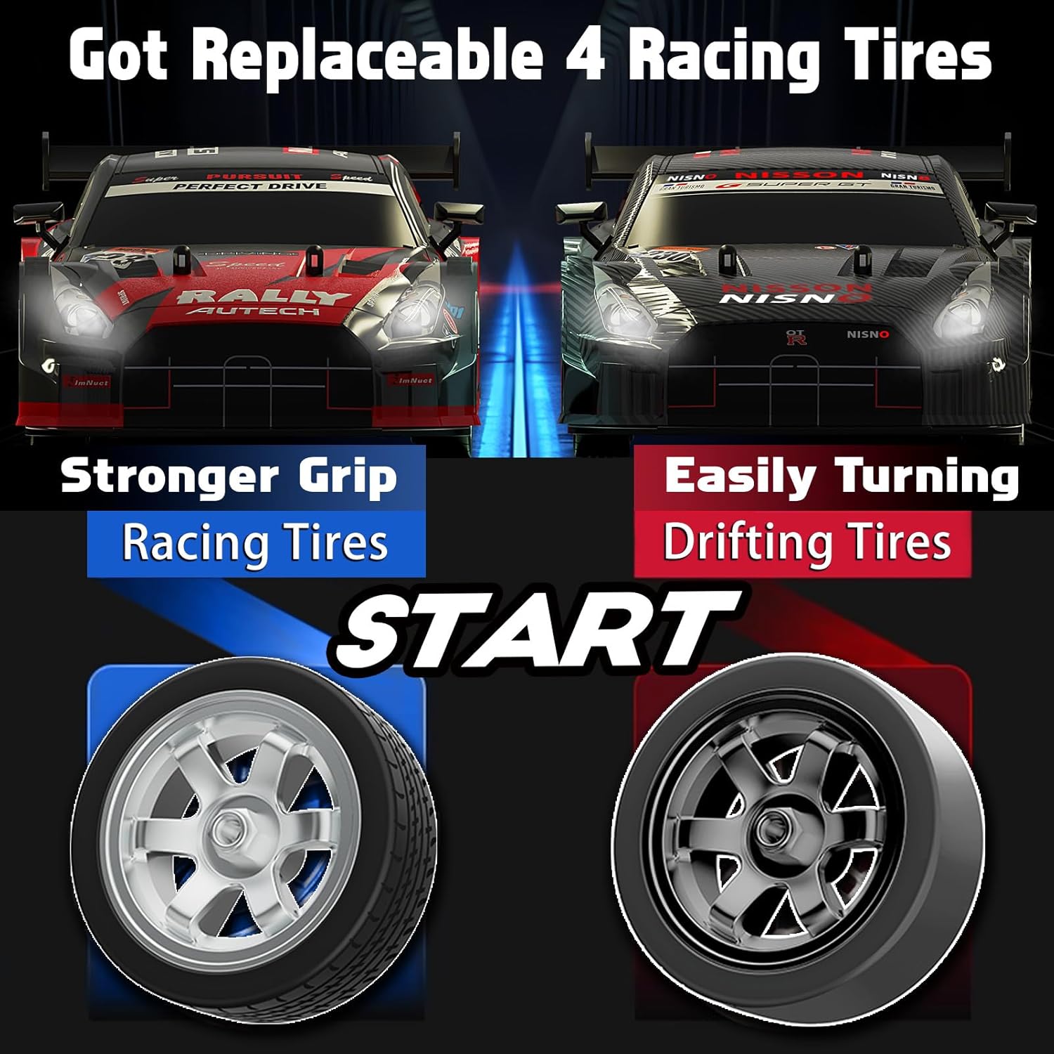 - Fast RC Car: With a 4WD system, it composed of a tough PVC shell and strong ABS base, which is resistant to collision and suitable for a variety of venues and environments; Drifting car equipped with bright LED lights, light up the track in the dark