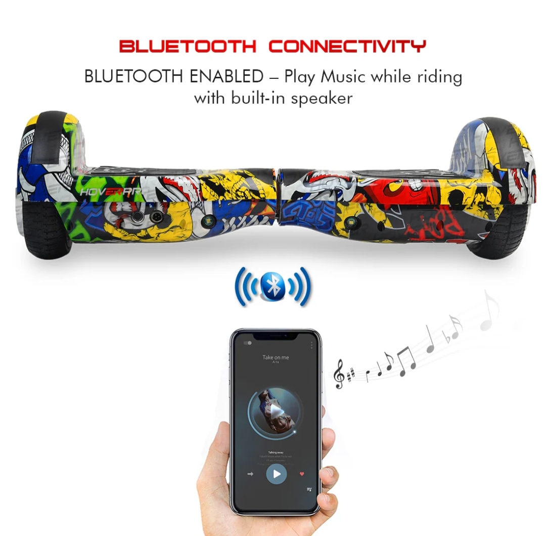 Our flagship model is a high-tech, hassle-free Hoverboard that offers the ultimate riding experience regardless of age or skill level. When put head to head with even the most expensive Hoverboard brands, the H6 has been rated #1 in both safety & durability. The hypersensitive gyro-sensors with START-UP Balance 2.0 make it an excellent choice for smaller riders while enabling it to turn on a dime for full-sized riders (unlike other brands with a lag in responsiveness causing the rider to fall off). Zoom effortlessly indoors & out across all types of flat terrain and integrated LED lights, Led Wheels & Bluetooth 4.0 so you can pump your music & light up the night as you ride!