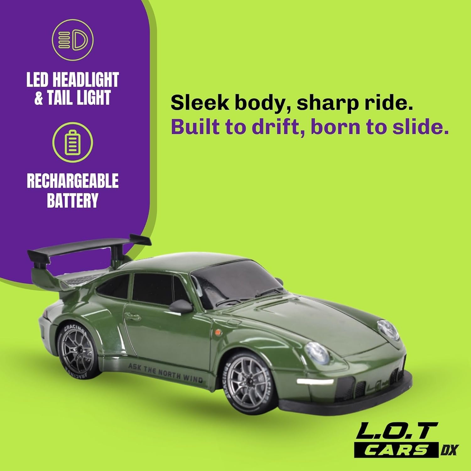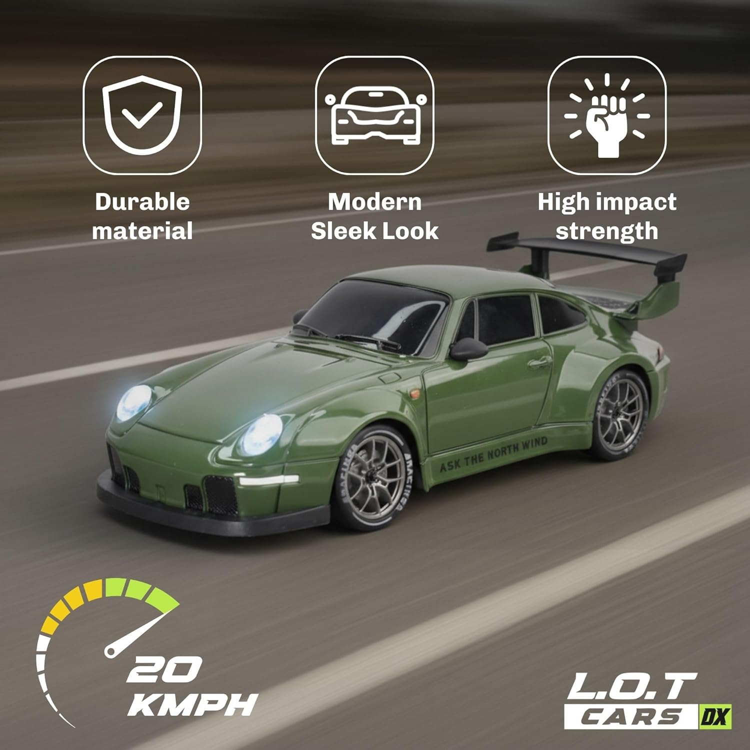 L.O.T TOYS Flare Remote Control Car | 20Kmph, 2.4Ghz | Rc Car, Rc Drifting Car, Remote, 4 Wheel Drive, Boost Mode, Long Range Remote, Hard Plastic Top with LED Head Light (Burnout Green)
