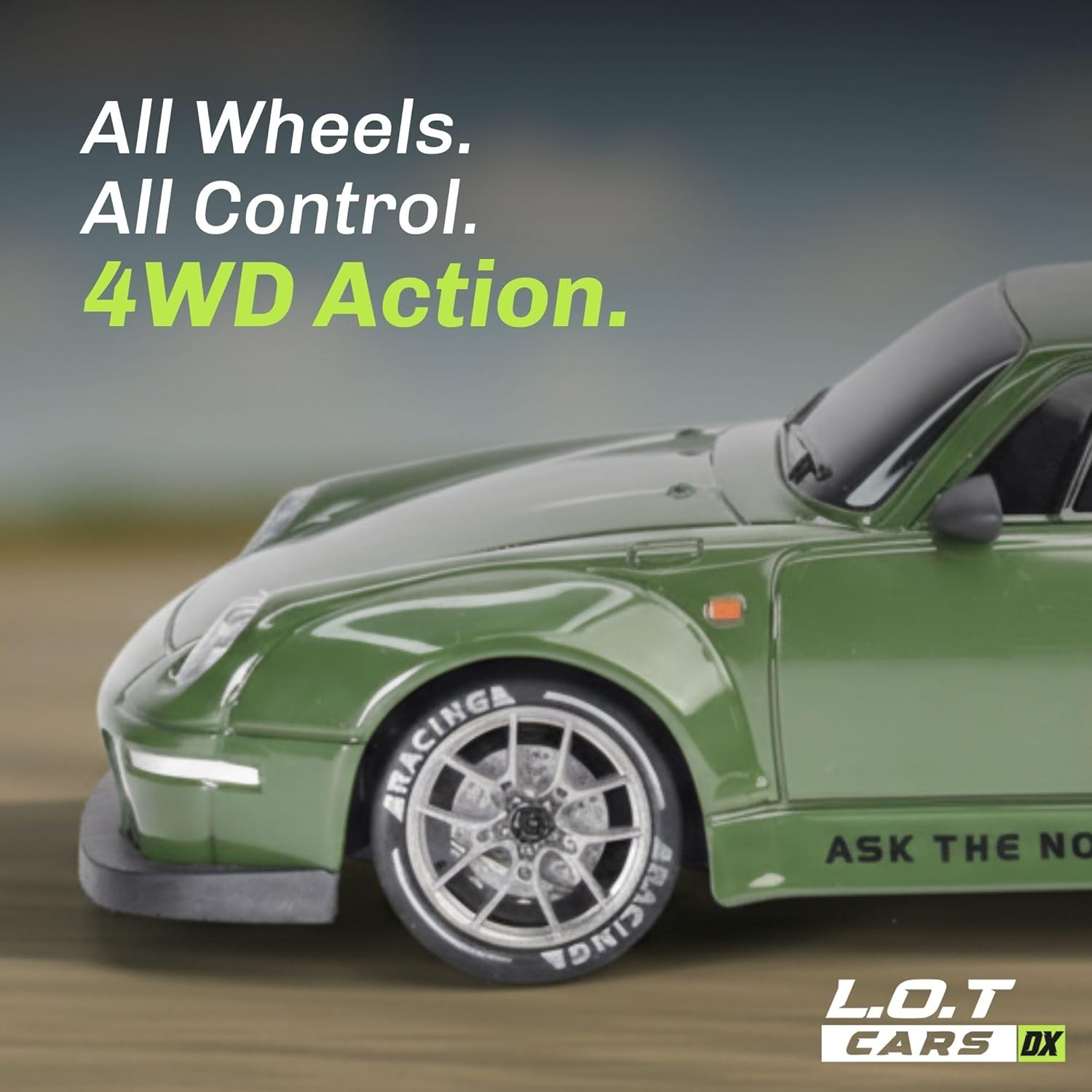 - 【Dual-Mode Racing Experience】Includes 4 drift tires and 4 racing tires with a quick-release mechanism for rapid swaps. Drift tires excel on smooth surfaces (wood, tile, tracks) for controlled slides, while racing tires offer superior traction on rough outdoor terrain. Tip: Switch to racing tires on uneven surfaces for optimal control.