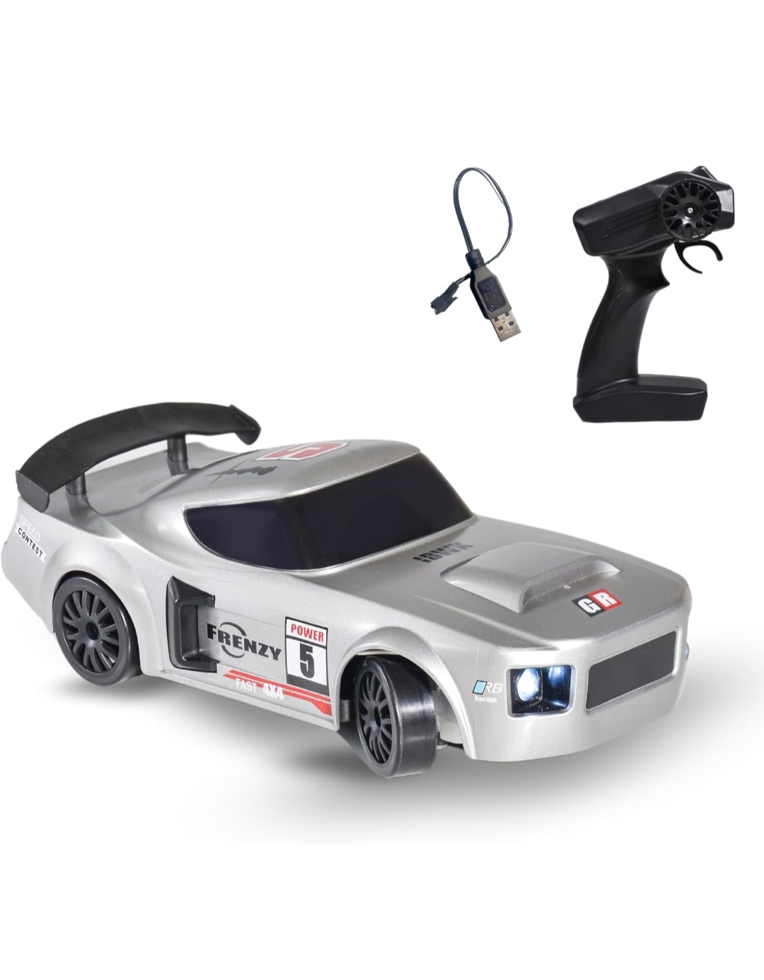 L.O.T TOYS | RC Drift Car with Remote Control, 2.4GHz Racing Car Kit, Pink, with Spare Tyres and Traffic Cones – Flare (Silver )