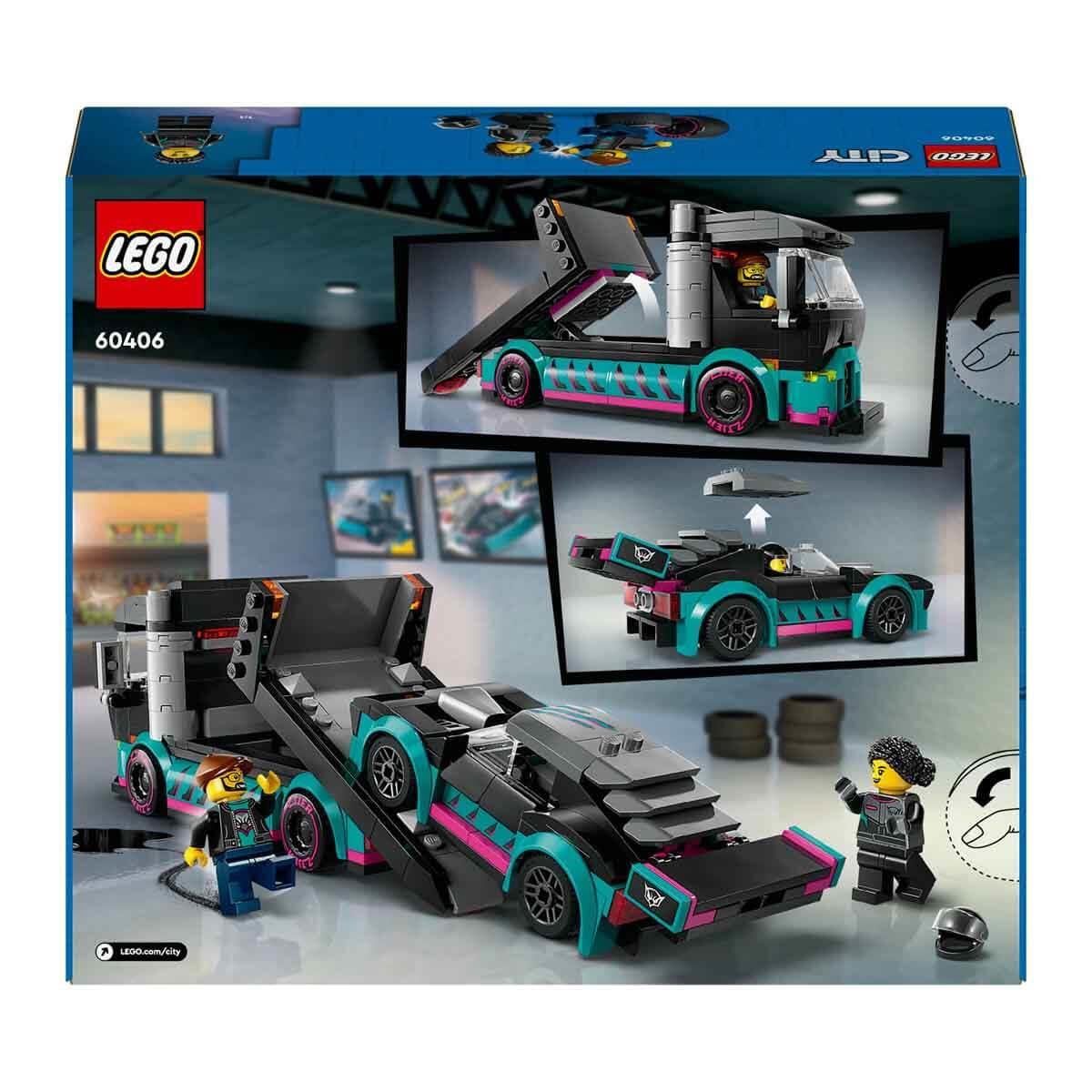 LEGO City Race Car and Car Carrier Truck Toy Playset for Ages 6 and up 60406