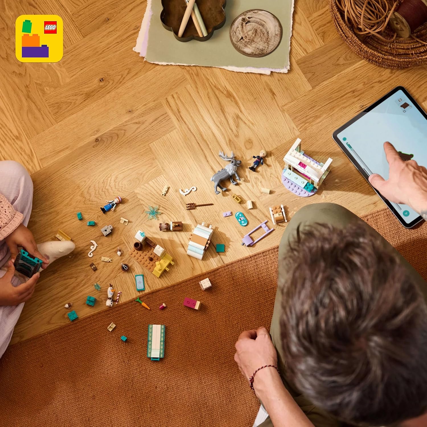 Story-starter buildable toys ? This LEGO building set lets Disney fans use their imaginations to have wintry fun like sledding or enjoying hot chocolate and snacks with Anna, Kristoff, Olaf and Sven