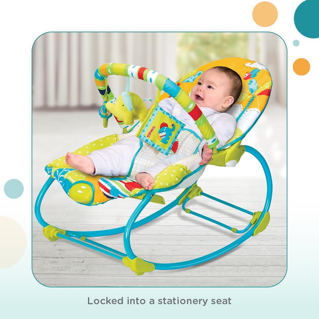 - 3 in 1 Function – It serves 3 functions that of rocker, sleeper, and bassinet.; Reclining Position – Backrest can be reclined to 3 positions for play, feed, and nap.