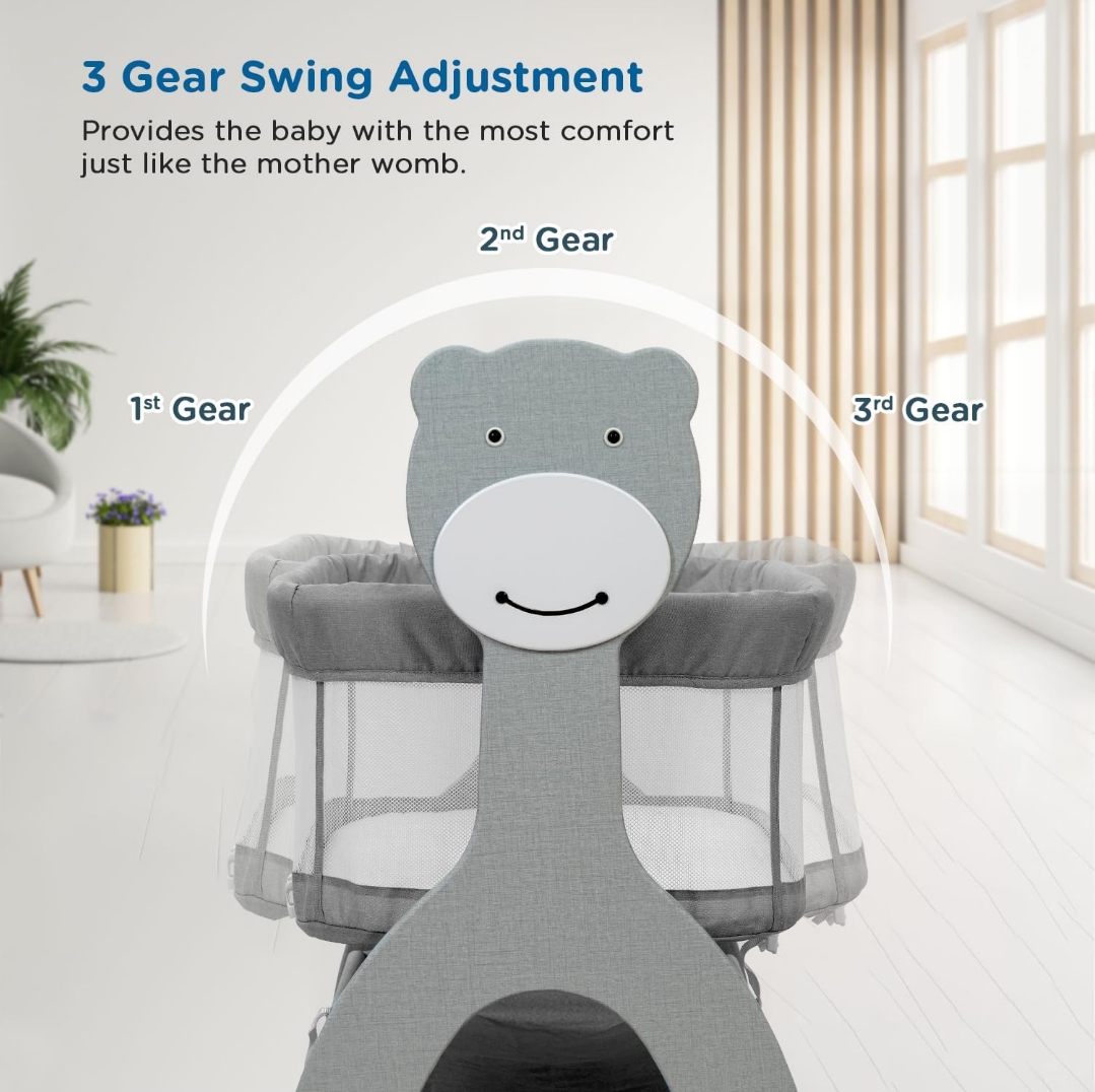 - Gentle Swinging Motion: The Mee Mee New Born Baby Sleep Swing Cradle offers a soothing swinging motion to lull your baby into a peaceful sleep, mimicking the comfort of being cradled in your arms.