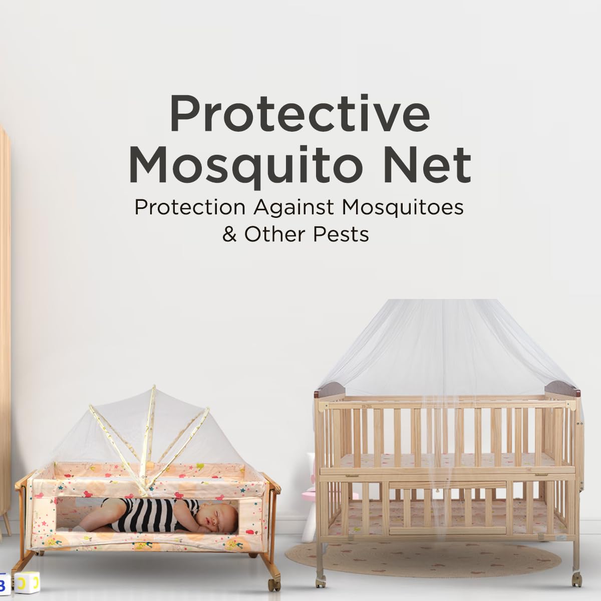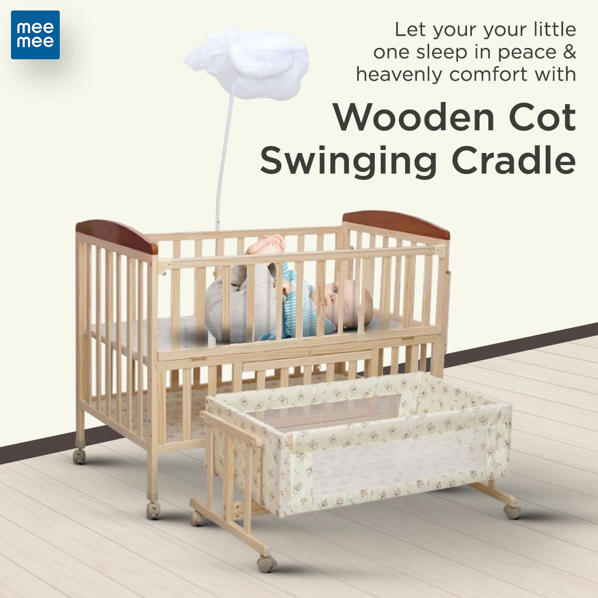 Mee Mee Wooden Baby Cot with Mosquito Net for 0-3 Years Toddler Bed, Cradle, Rocker Bedside Bed, Height Adjustable, Convertible Crib in Swing Mode with Large Storage Space 1