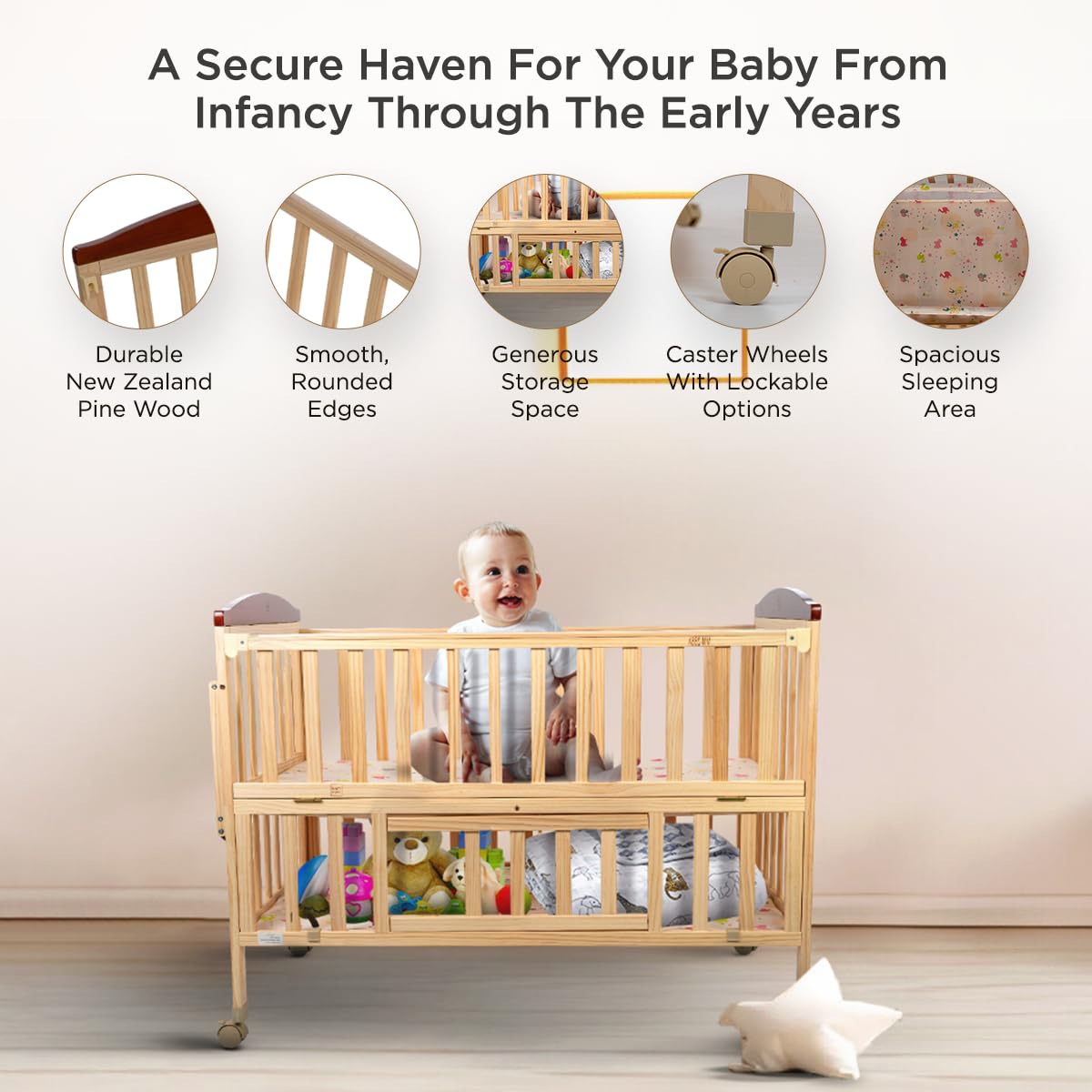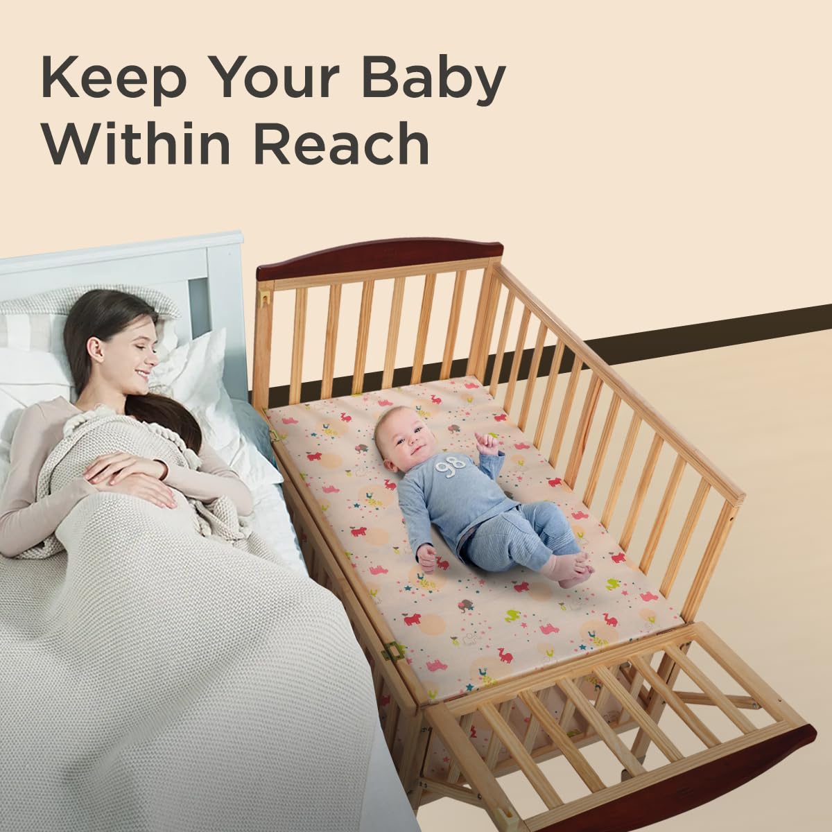 - Safety Railings & Eco-Friendly: Designed with closely spaced, rounded slats, the cot ensures maximum safety, preventing any accidental falls or injuries.