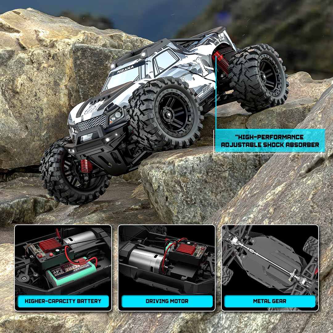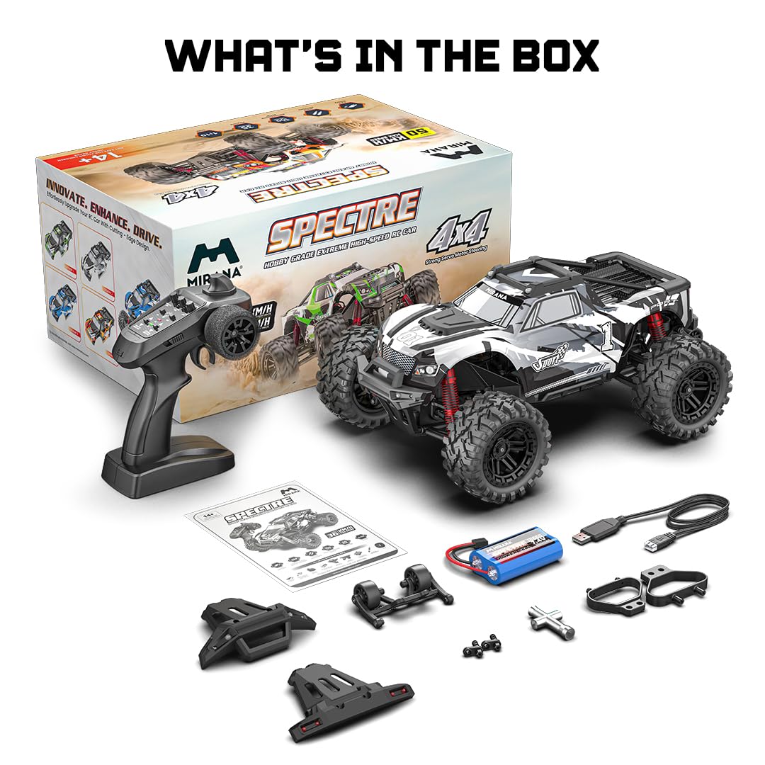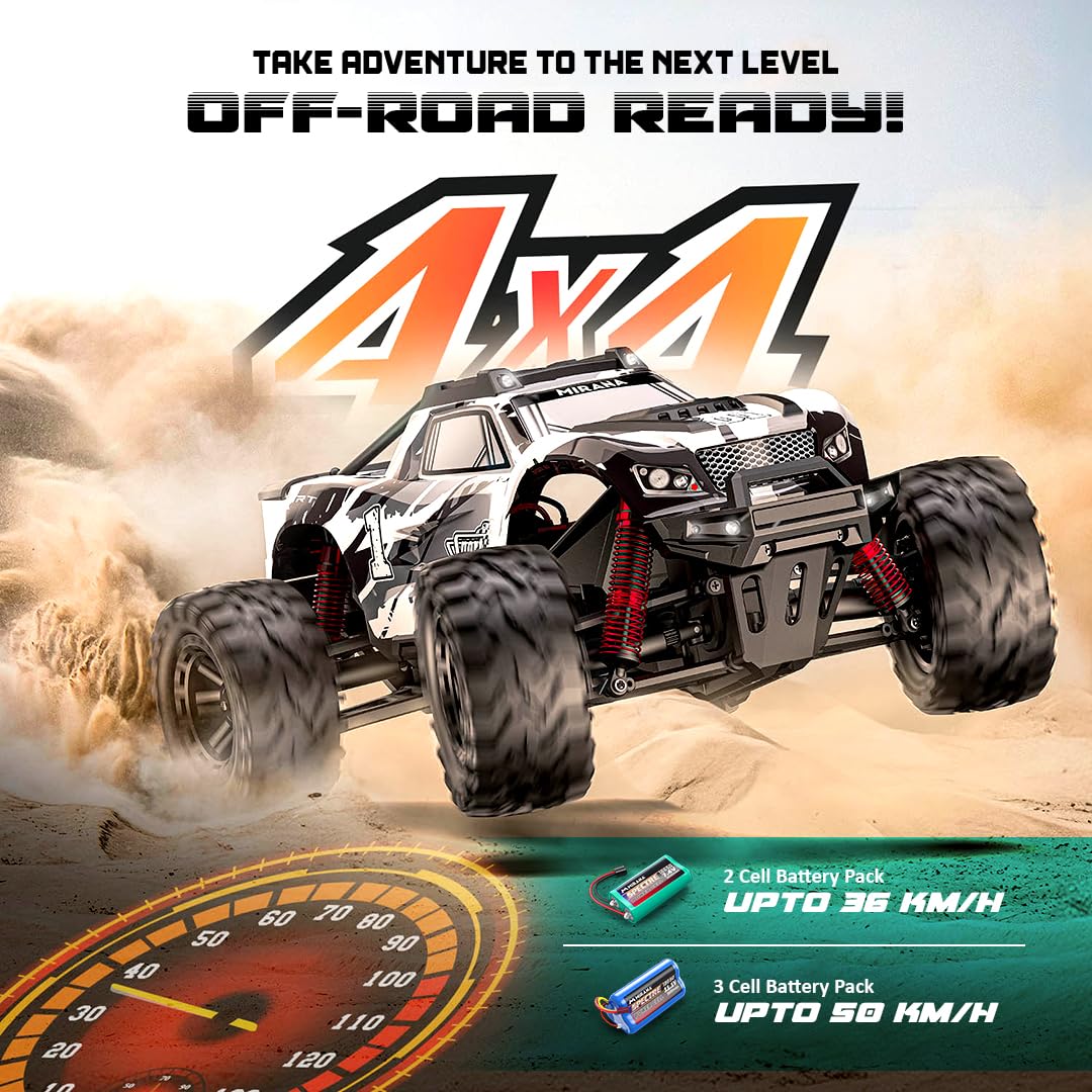 Mirana Spectre 1:10 High Speed Hobby Grade RC Car Toy for Kids & Adults up to 50 kmph – 4×4 Remote Control Offroad Monster Truck ATV – 2 & 3 Pack Rechargeable Batteries – for Ages 14+ Years (Silver)