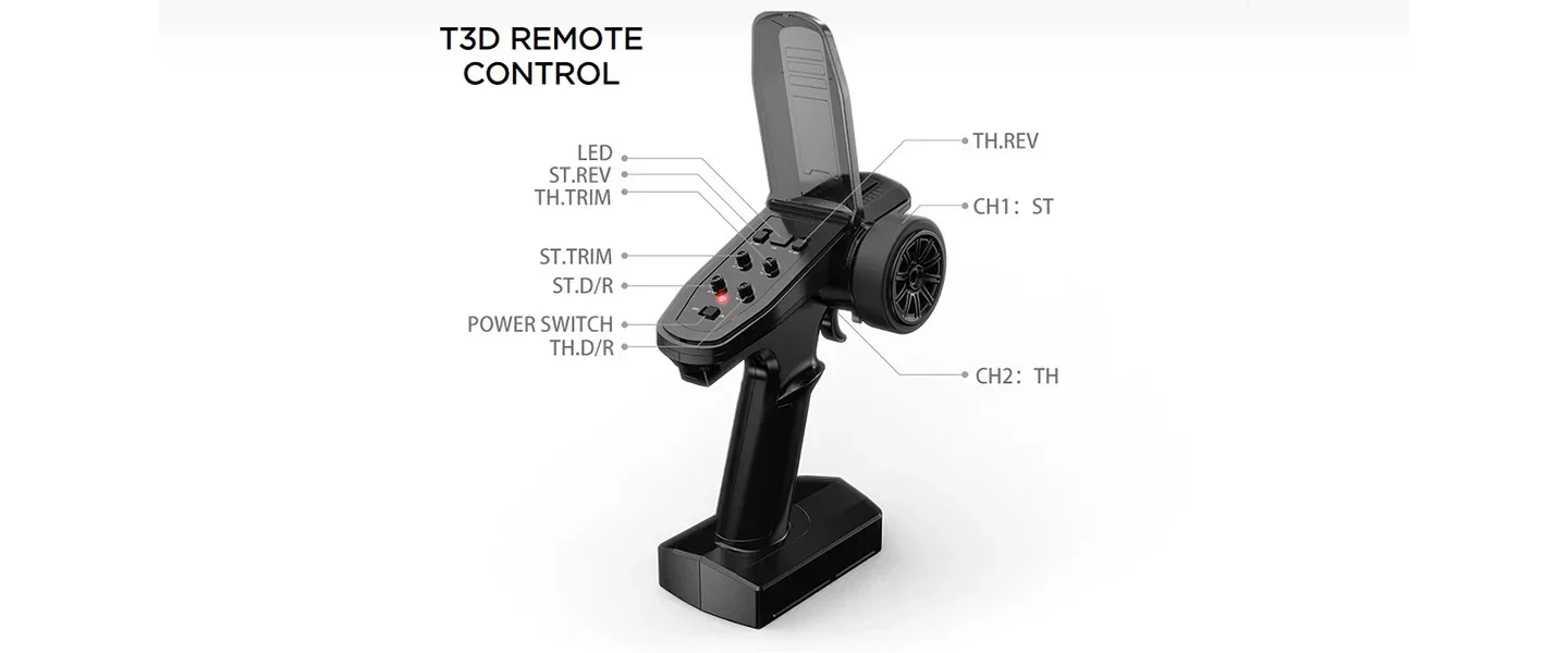 Transmitter: 2.4GHz Pistol-Grip (requires 4 x AA batteries)