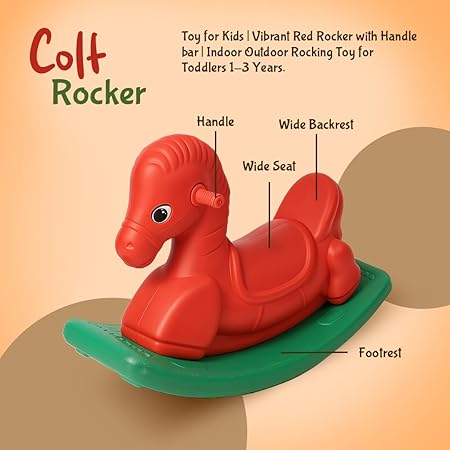 PLAYGRO Colt Ride-On Toy for Kids | Toddler Baby Rocker Toys with Safety Backrest to Support Kids | Indoor Outdoor Fun | 25kg Capacity | Age Group (12–36 Months) for Boys & Girls