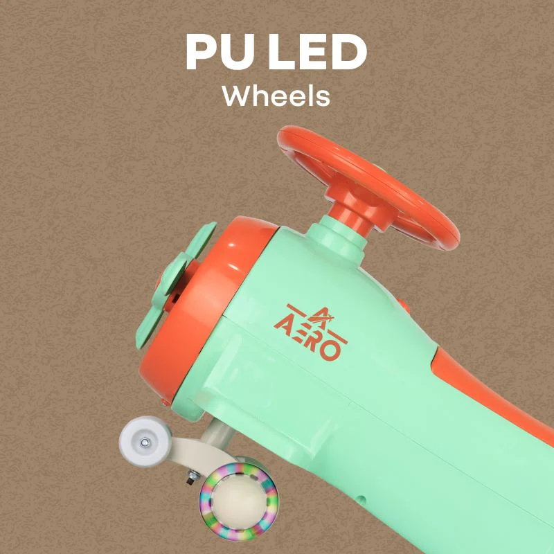 R for Rabbit Iya Iya Aero Kids Swing Car, Scratch Free PU LED Wheels with ABEC7 Bearing, Baby Ride on Magic Toy Panda Car for 2+ Years Boys & Girls, Upto 75 Kgs ( green orange)