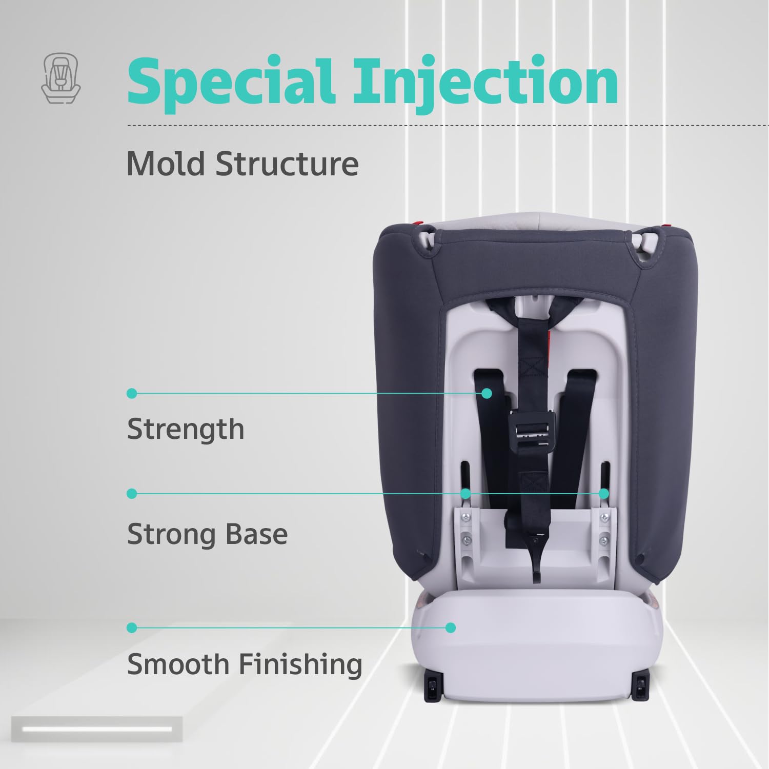 - Injection Mould Structure: This car seat is made with injection mould process to give extra sturdiness, strength and smooth finishing.