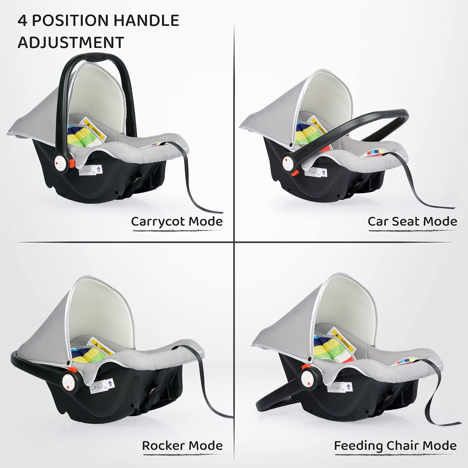 - Multi Positions carry cot for new born baby – Picaboo can be used as Infant Car seat, Carry Cot, Rocker and Feeding Chair as well when used in different position.