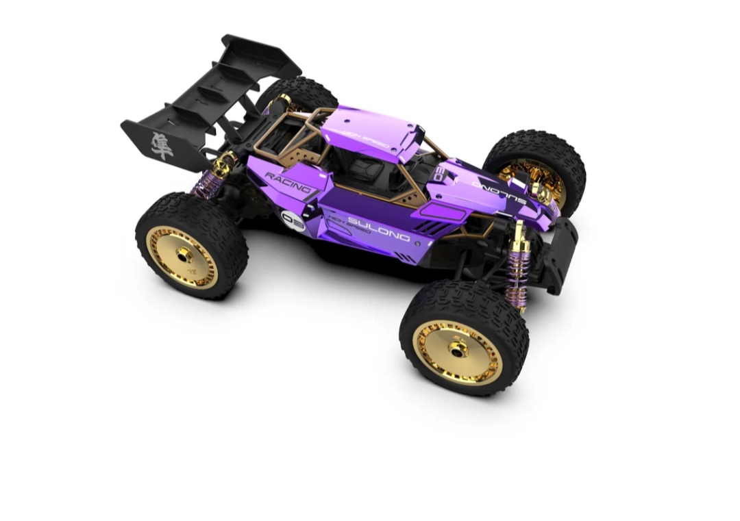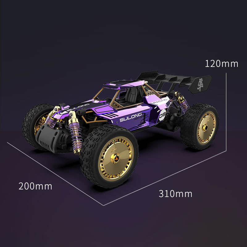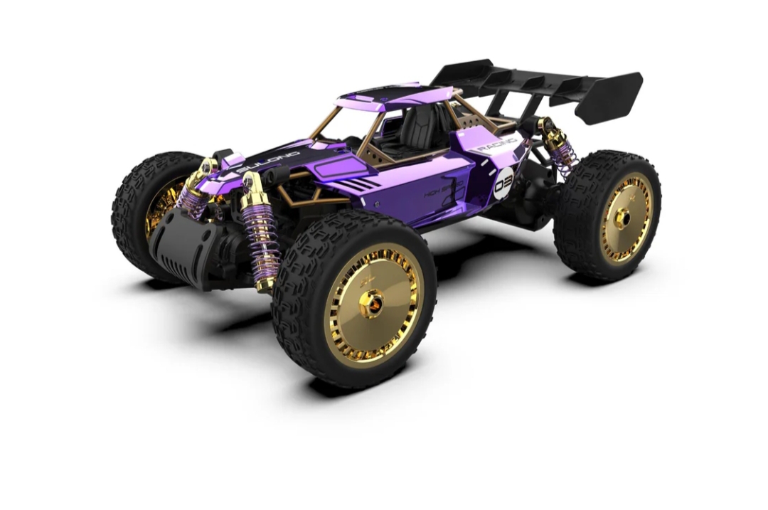 - 【Eye-Catching Design & High-Performance Running】The sleek, aggressive metal shell features exciting purple color, a rigid, injection-molded rear wing for more downforce, and the front bumpers protect against impacts. The strong composite chassis delivers better handling performance.