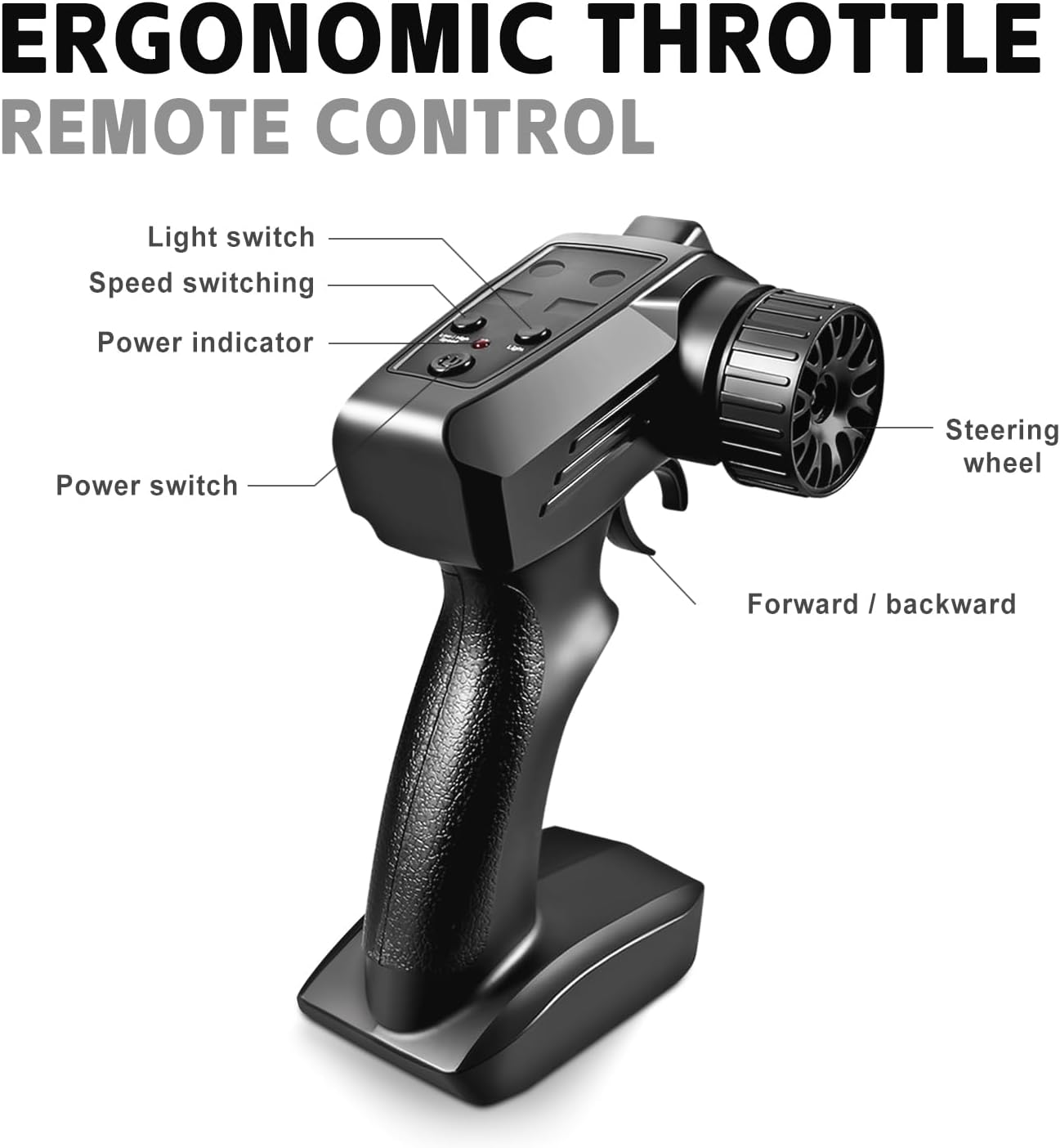 - 【Smart Control & Powertrain System】 Equipped with 2.4GHz anti-interference technology for multi-car simultaneous racing, paired with an ergonomic remote (adjustable sensitivity) for precise command delivery. The intelligent 4WD system employs dynamic torque distribution and differential coordination to optimize cornering power output, ensuring stable drift postures and high-speed balance. A full-range linear throttle response replicates real-world acceleration feedback, delivering an immersive driving experience from smooth starts to 20KM/H top-speed bursts.
