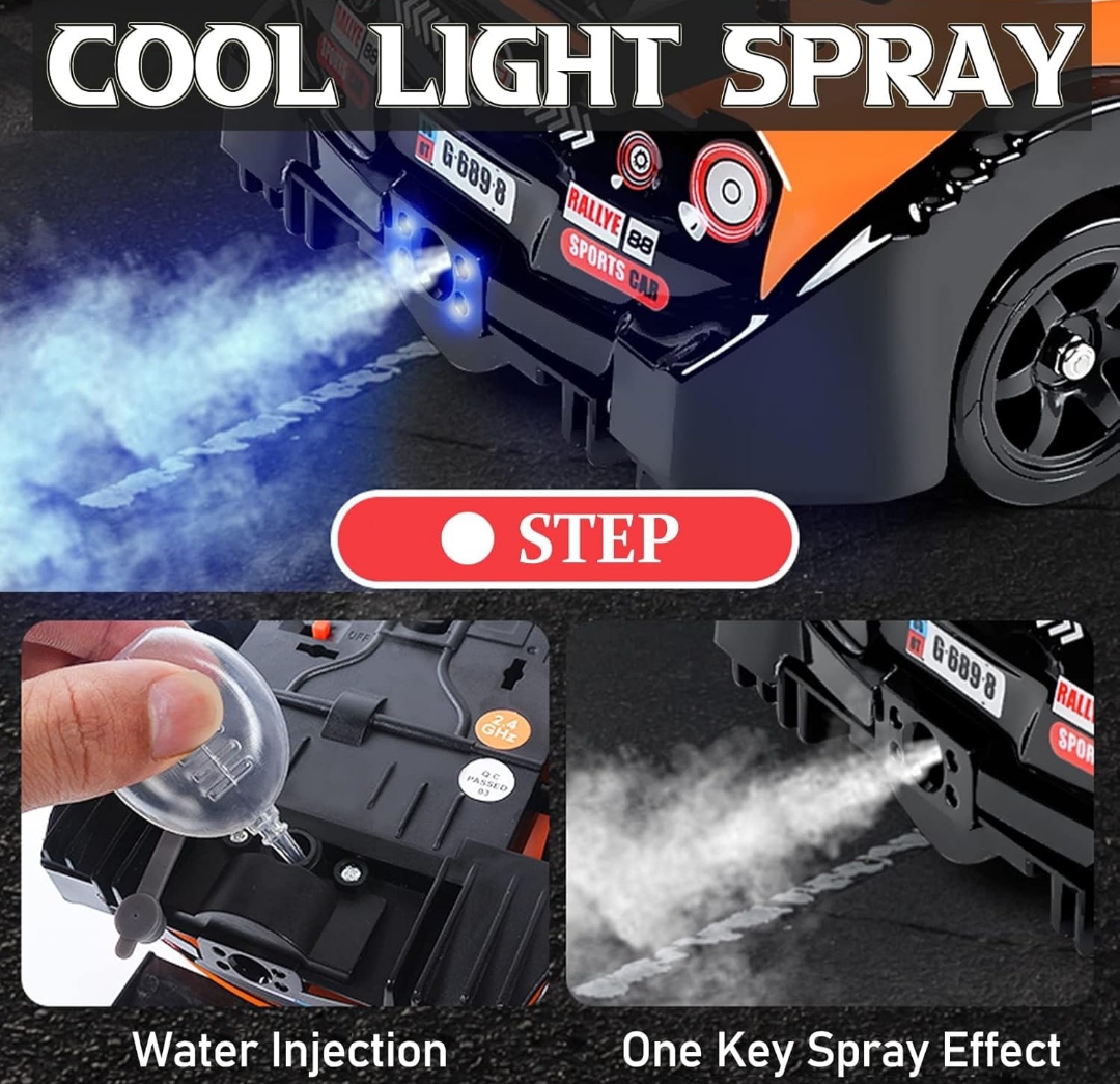With LED Light & Sprayer: Sakeye remote control car comes with a pair of LED lights and spray LED lights. When the RC car is powered up, the lights will start flashing gorgeously. Turn on the remote control handle spray button, the rear of the remote control car will show a cool and gorgeous water mist, making the remote control car more cool and exciting during driving