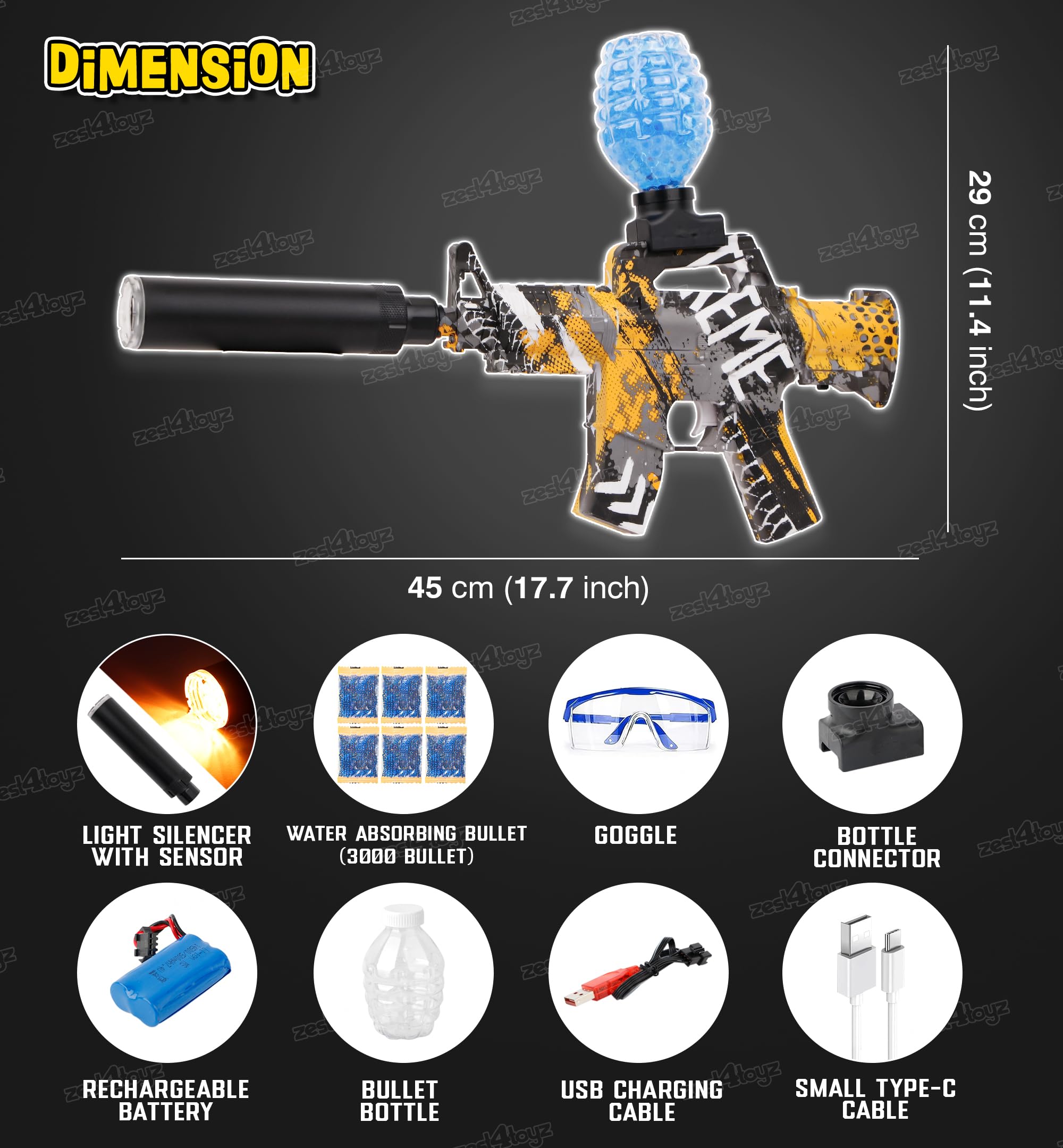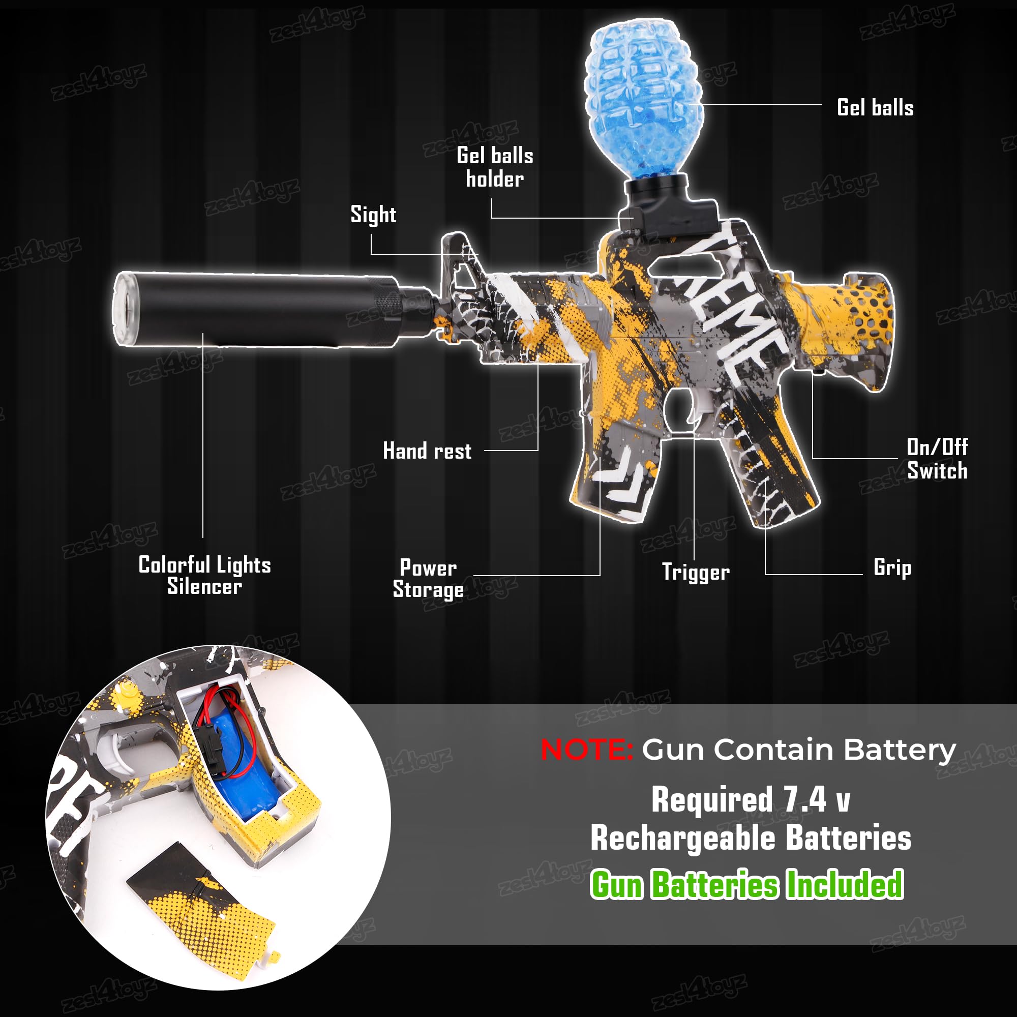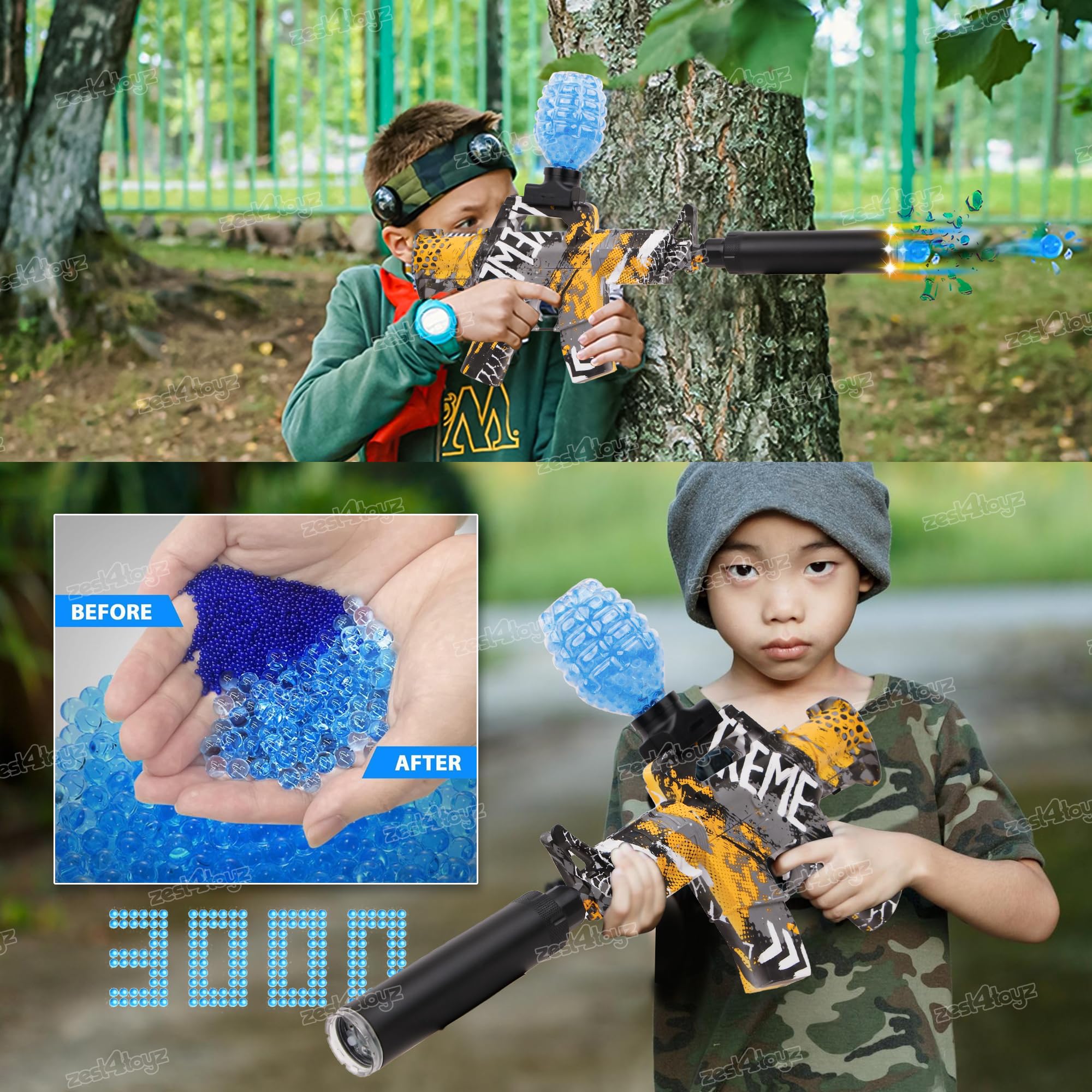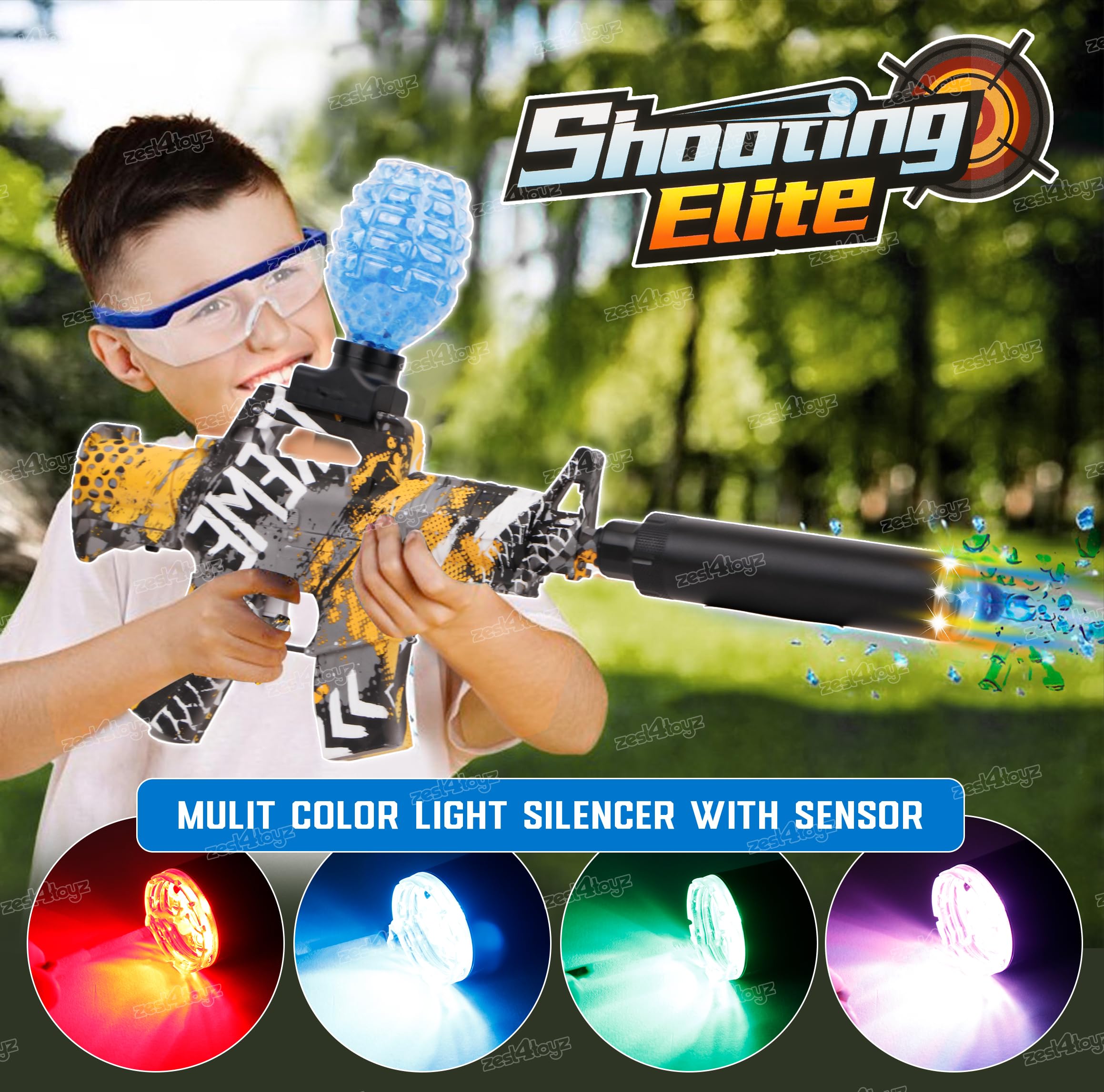 Zest 4 Toyz Electric Gel Balls Blaster Gun Toy for Kids Foam Blaster Toy with 3000 Gel Soft Splatter Balls, Ammo, Goggles, Scope Toy Gun for Outdoor Game for Boys Girls – Yellow
