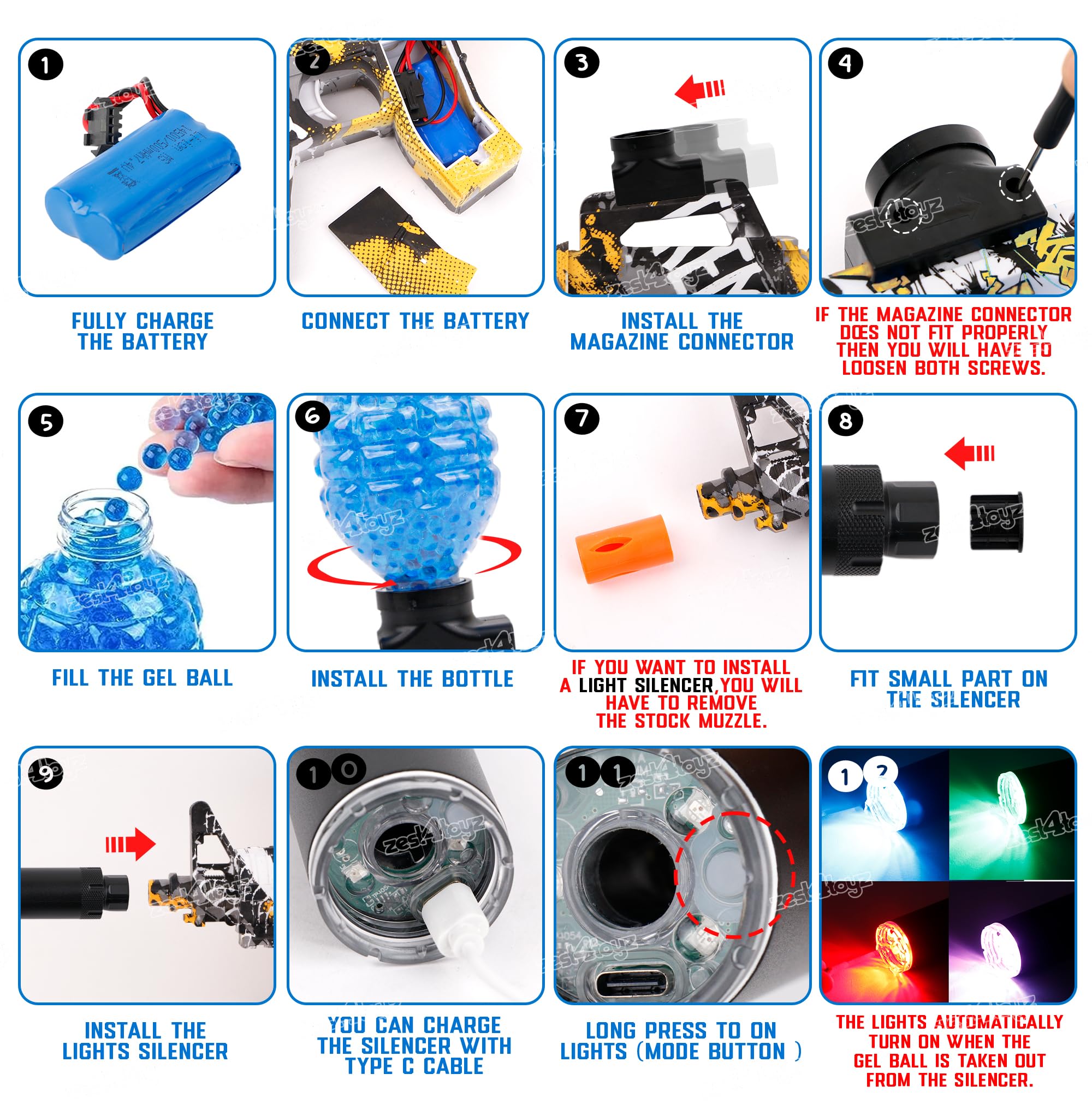 - Rechargable Batterry: This Water Blaster Gun Is Powered By A 1200mah Battery. The Battery Is Rechargeable. You Can Charge The Battery With Included Usb Cable.(please Read The Instruction Carefully)